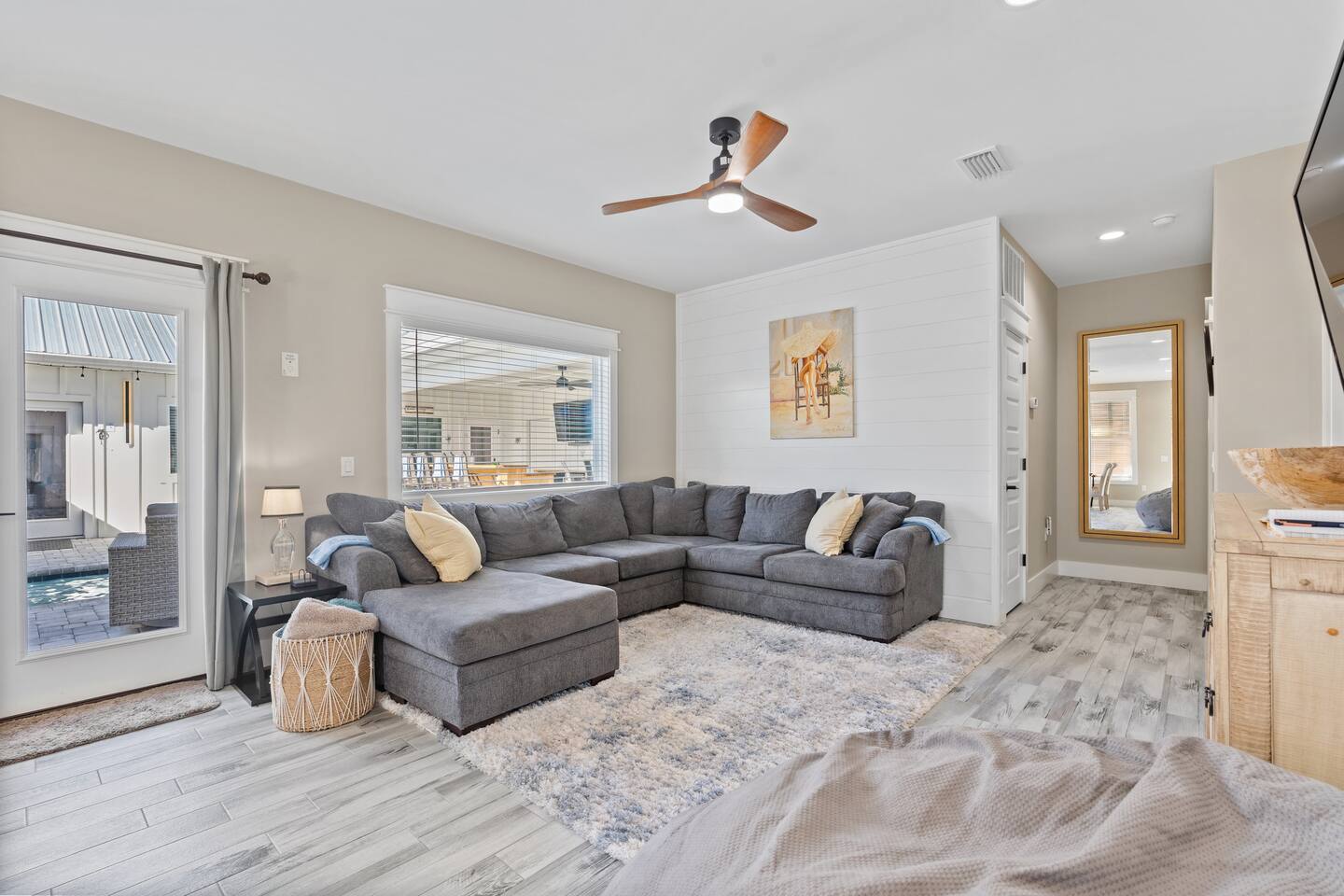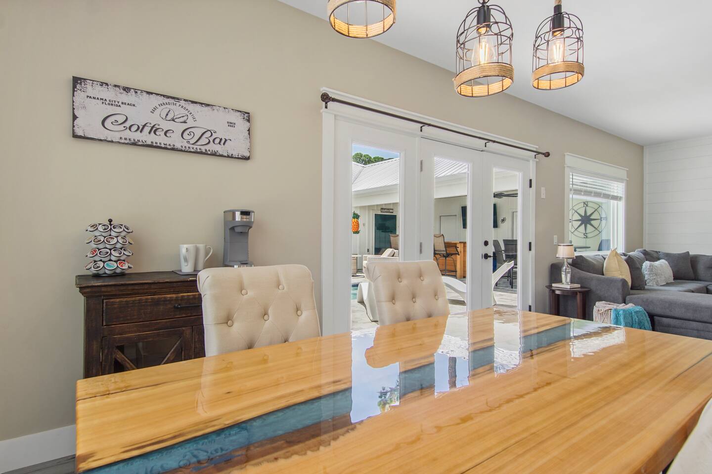 Experience two elegantly designed side-by-side villas seamlessly connected by a private entertainment patio. For those seeking the exclusivity of renting the entire property for your group, please send a message below, and I’ll be delighted to provide you with the listing details. Other amenities: → Outdoor shower → Dedicated workspace → Central AC + heating → Keurig coffee maker → Blender Every detail of our Panama City Beach vacation rental has been thoughtfully curated to offer a chic, intimate, and effortless escape. From luxurious amenities to serene surroundings, we provide everything you need for an extraordinary and unforgettable experience.