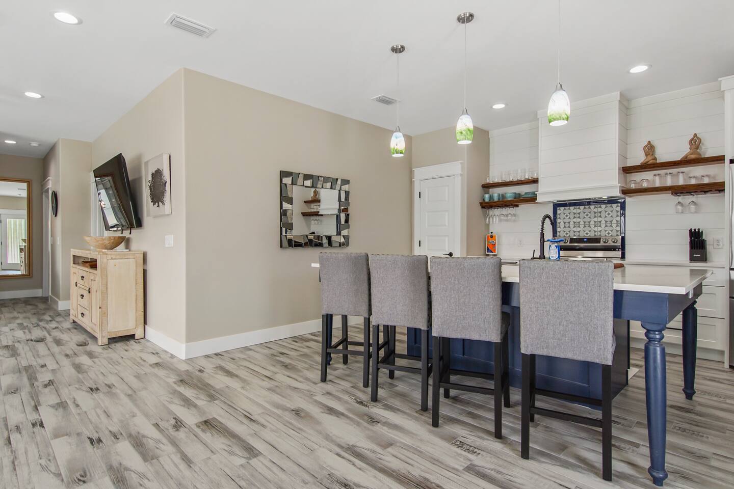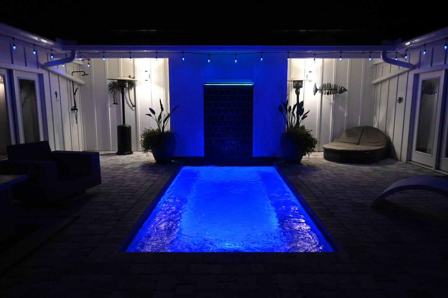 Escape to a luxurious, serene retreat whether you're unwinding by the clothing-optional heated saltwater pool or exploring nearby attractions, this exclusive getaway offers a perfect blend of comfort and style. ✔ Clothing-optional heated saltwater pool w/ LED waterfall ✔ Spacious patio w/ BBQ, dining area & fire pit ✔ Master suite w/ king bed & ensuite bath ✔ 65” Smart TVs in the living area & bedrooms ✔ Onsite washer + dryer for convenience 📍 Only 5 mins to Panama City Beach ⛱